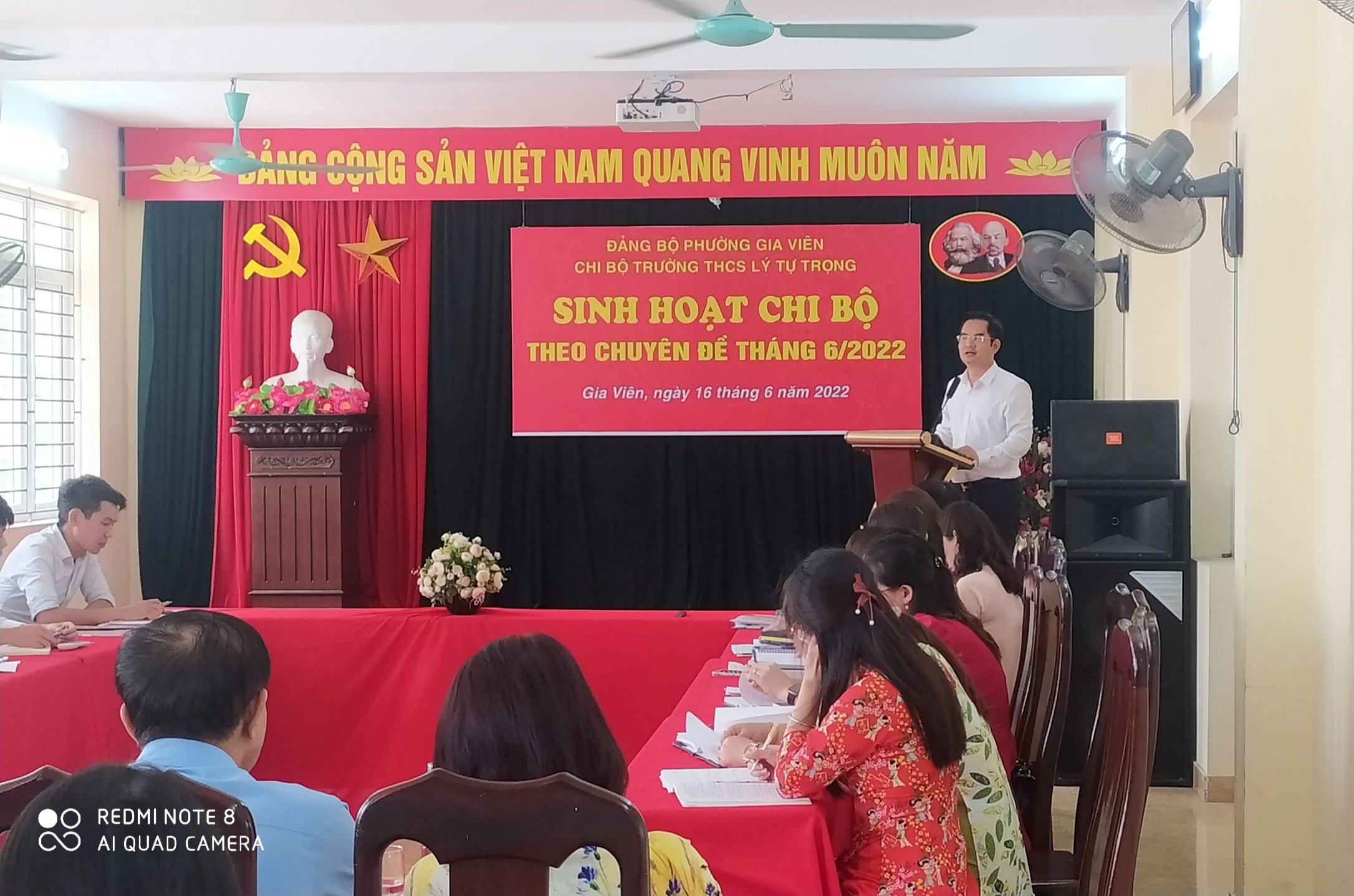 Thực hiện Kế hoạch số 15-KH/BCĐ ngày 04/05/2022 của Ban chỉ đạo Quận uỷ thực hiện Chỉ thị 10-CT/TW về tổ chức quán triệt, triển khai nâng cao chất lượng sinh hoạt chi bộ năm 2022; thực hiện Nghi quyết số 05-NQ/CB ngày 17/5/2022 của chi bộ, sáng ngày 16/6/2022, Chi bộ Trường THCS Lý Tự Trọng tổ chức sinh hoạt chuyên đề điểm với nội dung: “Lãnh đạo thực hiện hoàn thành chi tiêu tuyển sinh lớp 6 hàng năm”.