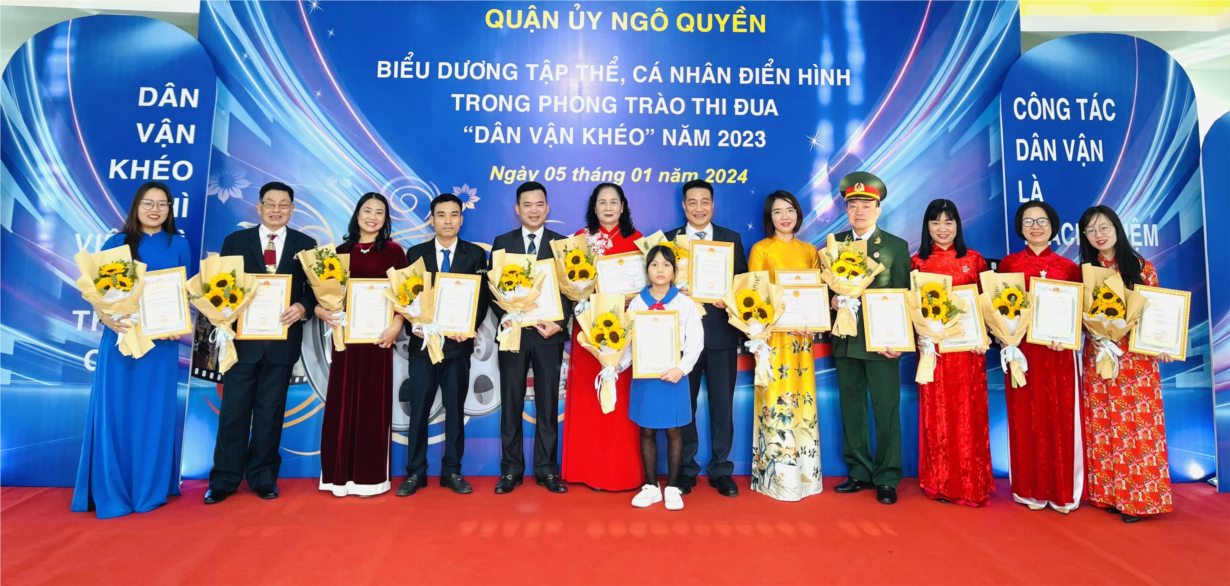 Tại hội nghị biểu dương, khen thưởng phong trào thi đua “Dân vận khéo”; tổng kết cuộc thi tuyên truyền các mô hình “Dân vận khéo” tham gia xây dựng nông thôn mới, đô thị văn minh và chuyển đổi số năm 2023 của Quận ủy Quận Ngô Quyền được tổ chức vào tuần 1 tháng 1 /2024 vừa qua, các tập thể và cá nhân trường THCS Lý Tự Trọng vinh dự được bước lên vị trí danh dự 3 lần để nhận biểu dương của Quận ủy – UBND Quận.