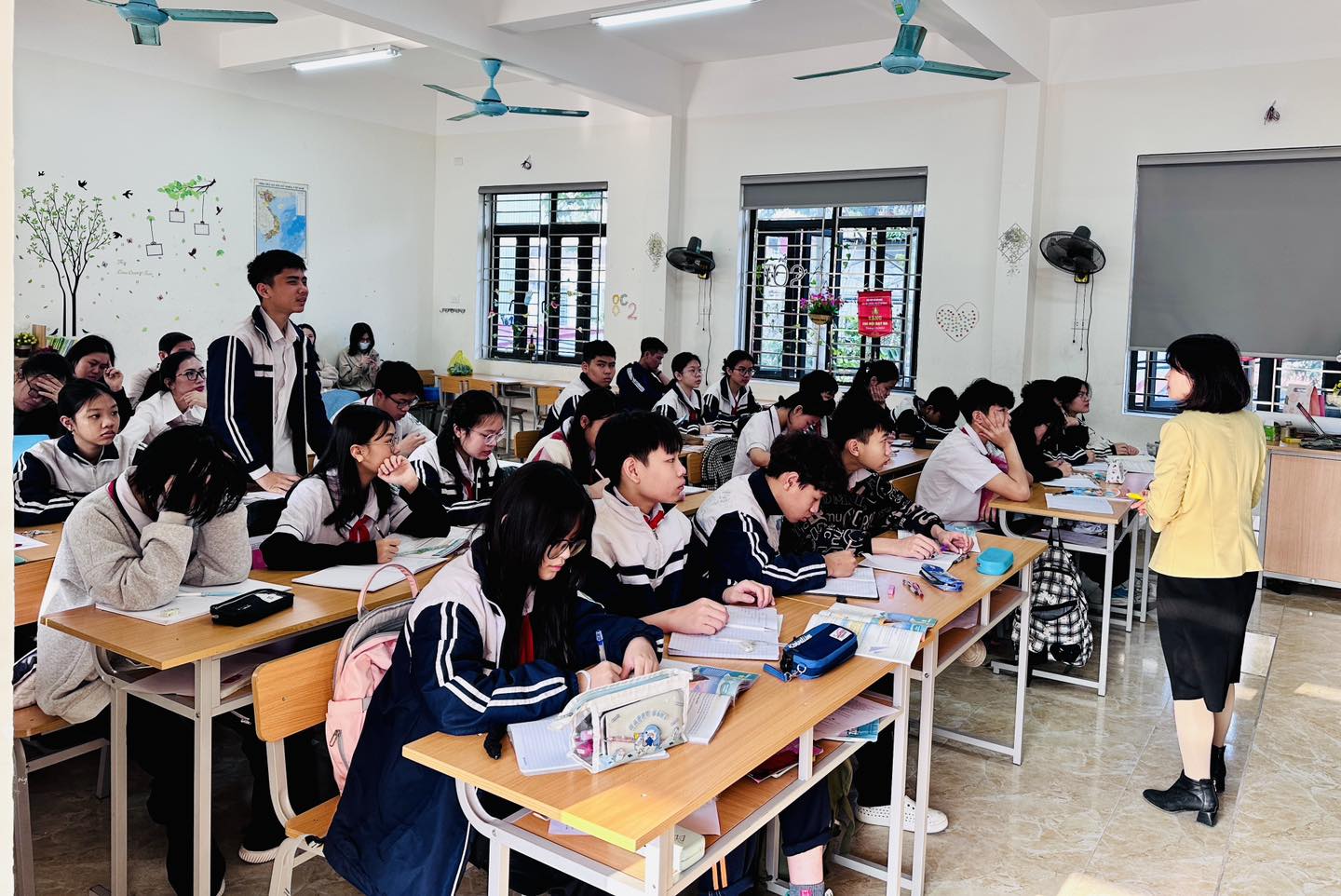 Đồng chí Vũ Trọng Tài – Hiệu trưởng nhà trường và đồng chí Đào Thị Thùy Dương – Phó Hiệu trưởng nhà trường đã tới dự giờ và rút kinh nghiệm với 2 tổ chuyên môn. Tổ KHTN có đồng chí Trần Thị Hồng lên tiết Toán lớp 8C2: “Ôn tập giữa học kì II”. Đồng chí Trần Tường Vi tổ KHXH lên lớp tiết Tiếng Anh 6A3: “Unit 10: Our houses in the future. Lesson 1: Getting started”. Với mục tiêu vận dụng các phương pháp dạy học tích cực nhằm phát huy năng lực của học sinh, 2 tiết dạy đã lựa chọn bài dạy phù hợp, có sự chuẩn bị chu đáo. Qua việc vận dụng đổi mới PPDH của giáo viên, học sinh được phát huy tính tích cực chủ động, sáng tạo trong học tập. Các em tham gia hoạt động, trò chơi một cách hào hứng sôi nổi, tự tin, khiến giờ học không bị gò bó, áp đặt mà diễn ra nhẹ nhàng, tự nhiên, hiệu quả, khơi dậy hứng thú học tập của học sinh.