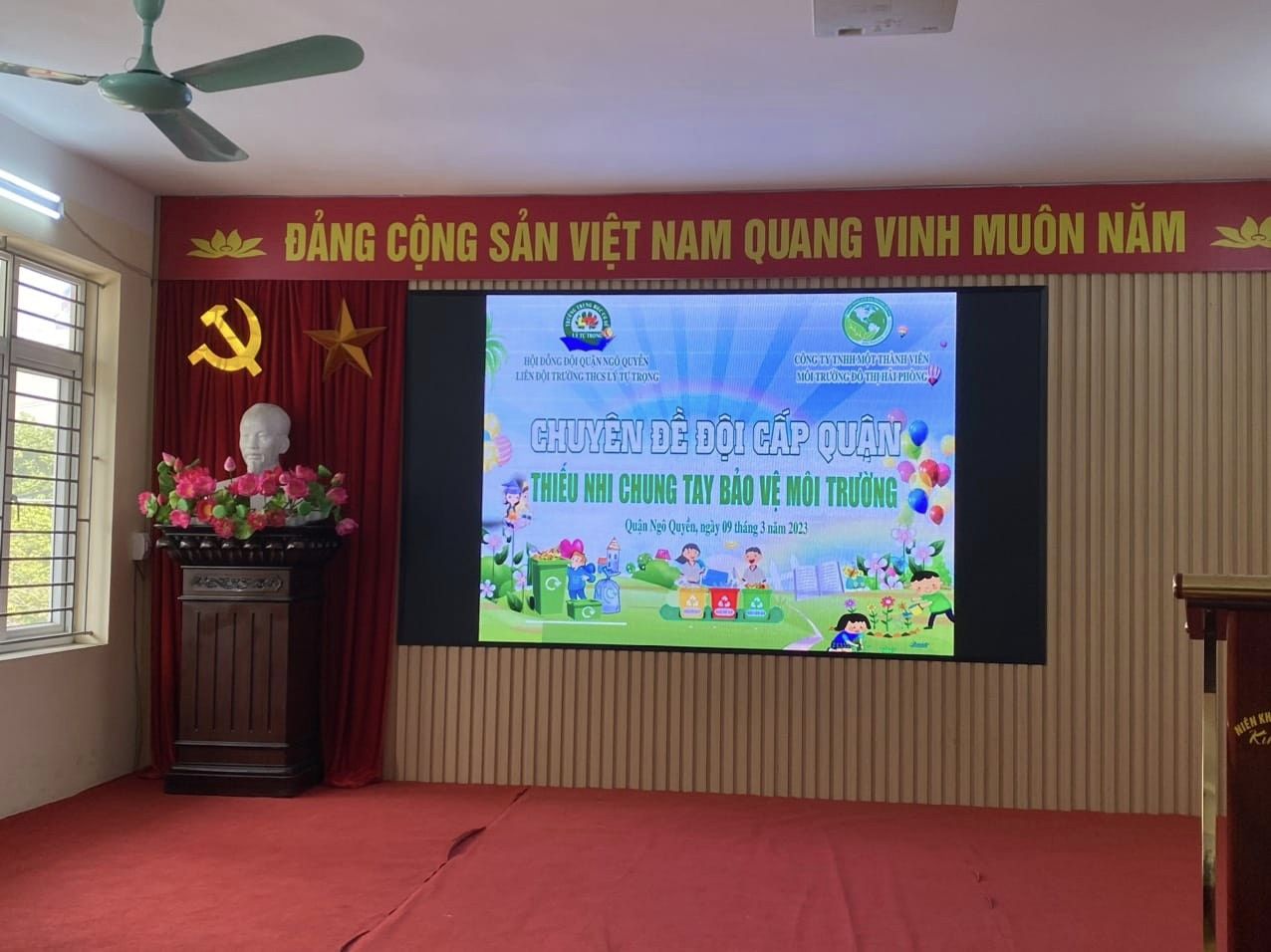 Thực hiện chủ đề năm học “Thiếu nhi Hải Phòng -Làm nghìn việc tốt - Tiến bước lên Đoàn”; chào mừng các ngày lễ lớn trong tháng 3,thực hiện sự chỉ đạo của Hội Đồng Đội Quận Ngô Quyền, chiều ngày 9 va 16/3/2023; Liên đội trường THCS Lý Tự Trọng tổ chức chuyên đề cấp Quận “Thiếu nhi chung tay bảo vệ môi trường, nhằm nâng cao nhận thức của học sinh về tầm quan trọng của công tác bảo vệ môi trường biển, nguồn nước, bảo vệ các công trình cấp nước bằng những hành động nhỏ nhưng ý nghĩa lớn góp phần giữ gìn cảnh quan môi trường xanh - sạch - đẹp.