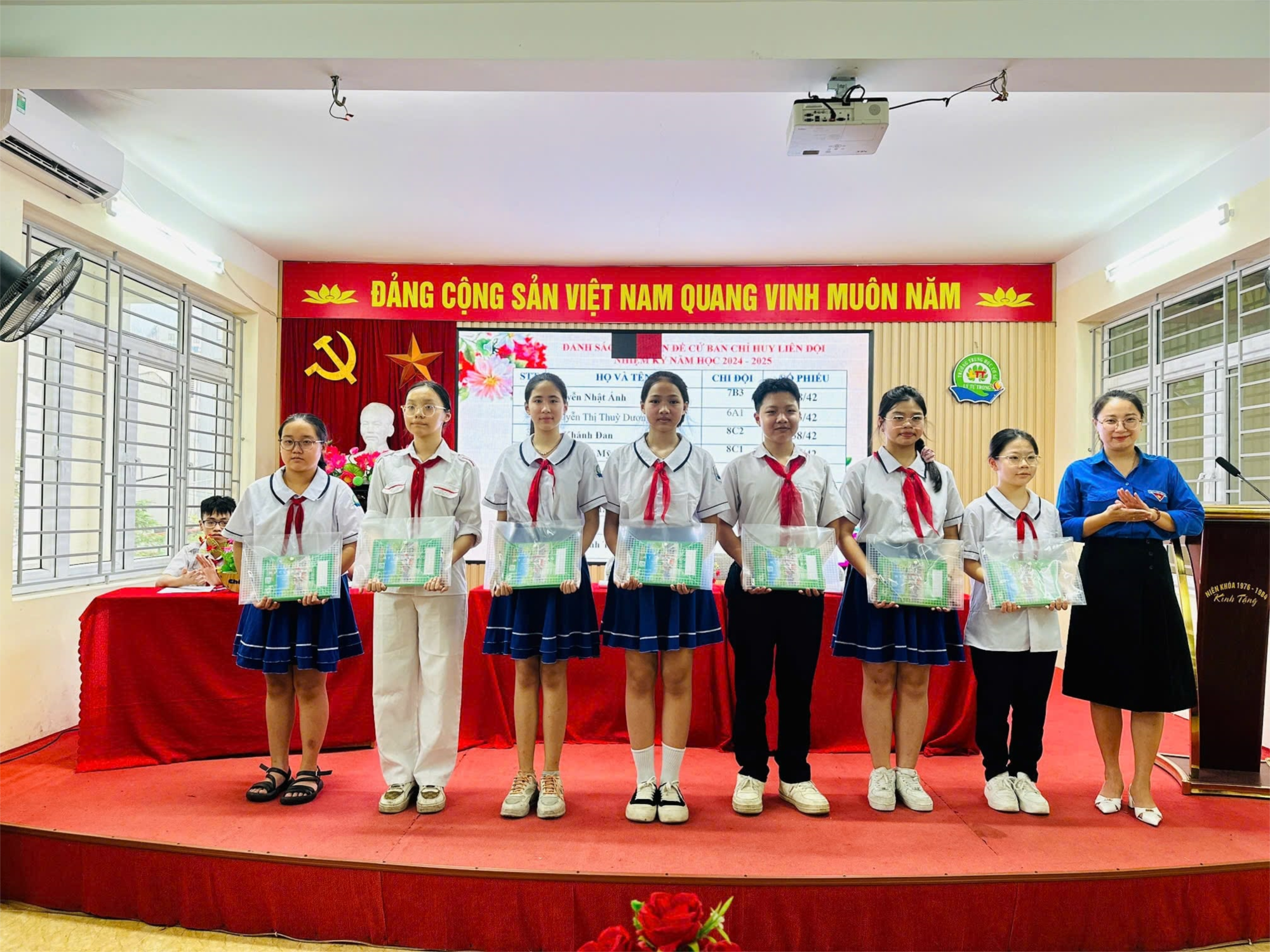 Sau một thời gian làm việc nghiêm túc, khẩn trương, Đại hội đã bầu BCH Liên đội năm học 2024 - 2025 gồm 7 đội viên ưu tú. Các em là những đội viên tiêu biểu có phẩm chất đạo đức tốt, có năng lực hoạt động Đội và có tinh thần trách nhiệm cao trong công việc.