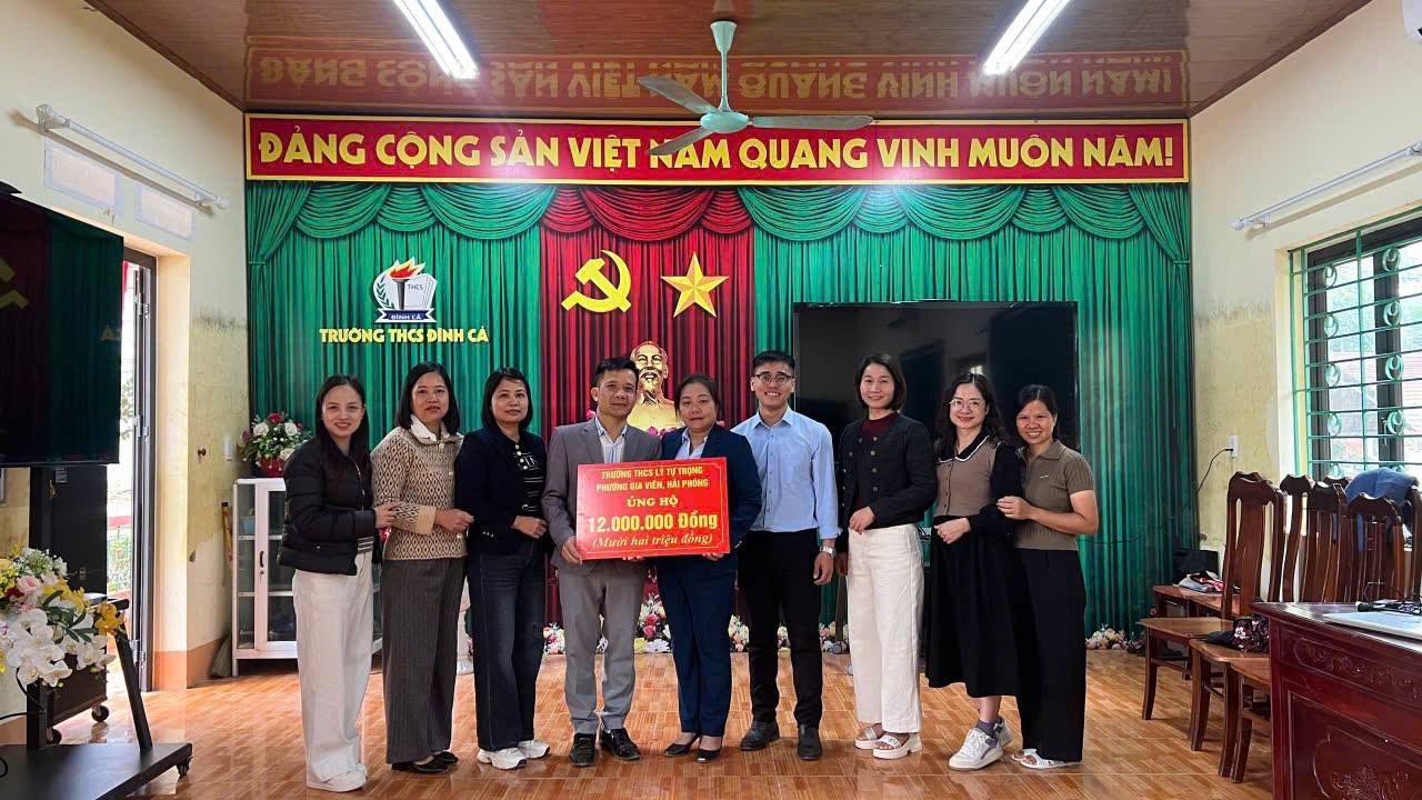 Đặc biệt, Liên đội Trường THCS Lý Tự Trọng đã trao tặng Trường THCS Đình Cả số tiền 12 triệu đồng, là tấm lòng của các em học sinh toàn trường hưởng ứng phong trào “Quyên góp đồng bào chịu ảnh hưởng của thiên tai”.