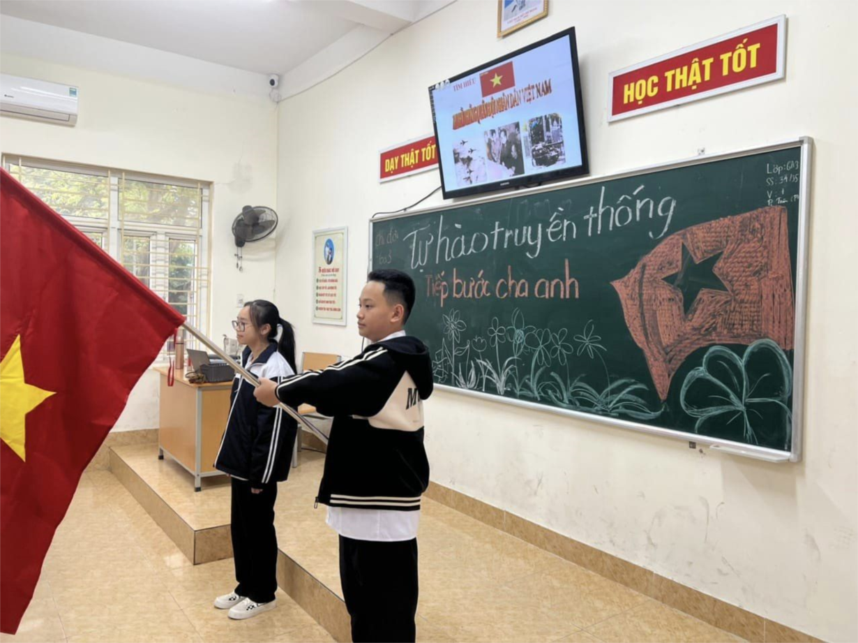 Hướng tới kỷ niệm 79 năm ngày thành lập Quân đội Nhân dân Việt Nam (22/12/1944 - 22/12/2023) và ngày Hội Quốc phòng toàn dân (22/12/1989 - 22/12/2021), sáng ngày18/12/2023, Liên đội Trường THCS Lý Tự Trọng chỉ đạo các chi đội tổ chức sinh hoạt với chủ đề “ Tự hào truyền thống- Tiếp bước cha anh” với nhiều hoạt động ý nghĩa cho đội viên, thiếu niên nhằm giáo dục lòng yêu nước, truyền thống “uống nước nhớ nguồn”, tưởng nhớ đến các anh hùng, liệt sĩ đã hy sinh, tỏ lòng biết ơn, kính trọng đối với các cô chú bộ đội đang làm nhiệm vụ bảo vệ Tổ quốc. Đồng thời, giúp các em hiểu biết hơn về truyền thống Quân đội Nhân dân Việt Nam, sức mạnh bảo vệ Tổ quốc của dân tộc Việt Nam và truyền thống của Đảng bộ, chính quyền và nhân dân Hải Phòng.
