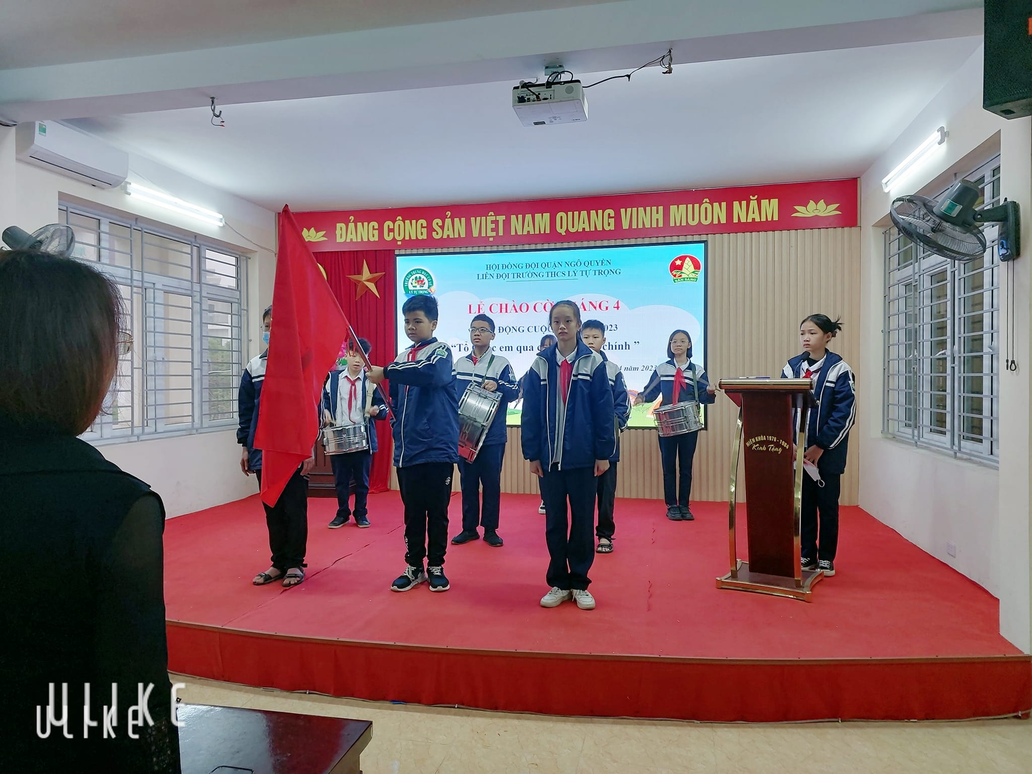 Thực hiện Kế hoạch công tác Đội và phong trào thiếu nhi năm học 2022-2023, Liên đội THCS Lý Tự Trong tổ chức chương trình Chào cờ Liên đội tháng 4.