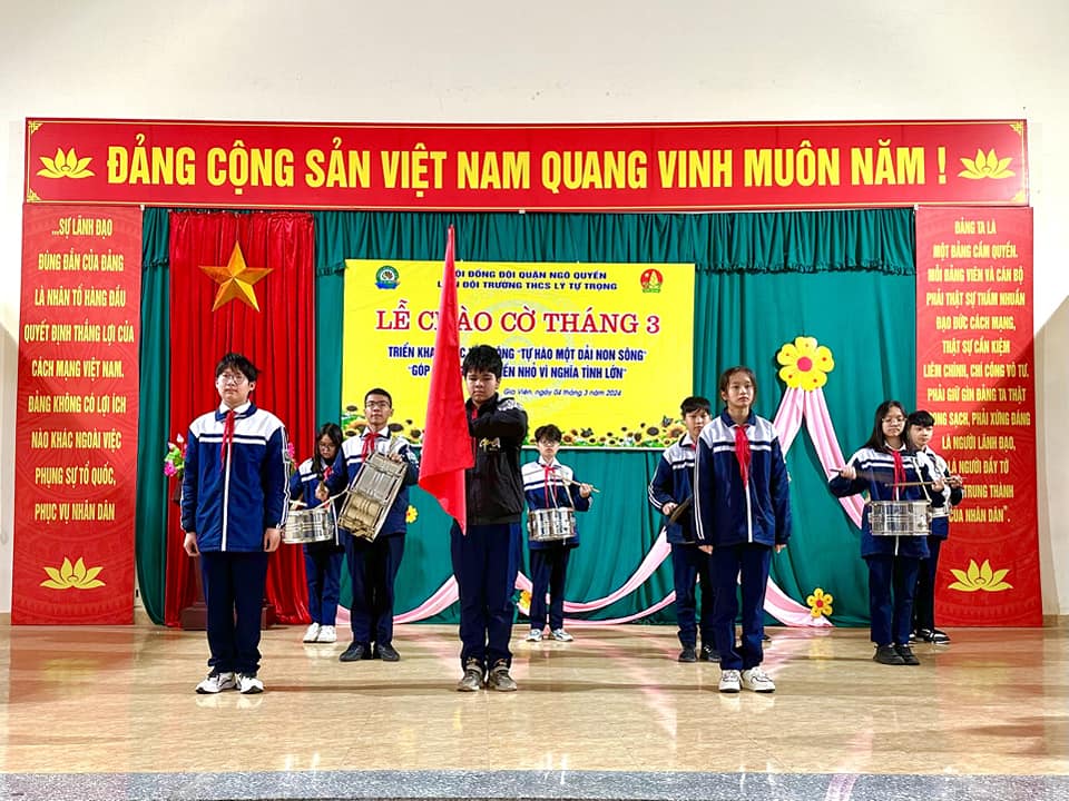 rong không khí náo nức của cả nước chào mừng kỉ niệm 93 năm ngày thành lập Đoàn TNCS Hồ Chí Minh (26/3/1931 – 26/3/2024) và 83 năm ngày thành lập Đội TNTP Hồ Chí Minh (15/5/1941 – 15/5/2024). Sáng ngày 04/3/2024, Liên đội trường THCS Lý Tự Trọng long trọng tổ chức lễ chào cờ tháng 3 với nhiều hoạt động ý nghĩa.