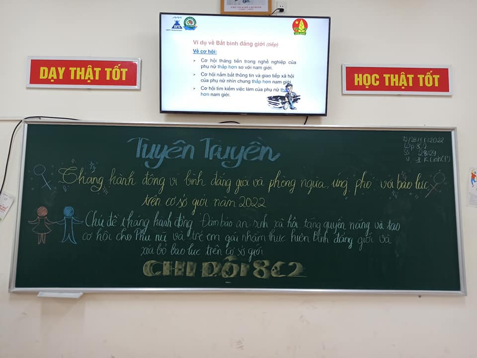 Thực hiện công văn số 5654/ BGDĐT- TCCB của Bộ giáo dục và Đào tạo; Kế hoạch số 240/KH-UBND ngày 17/10/2022 của Ủy ban nhân dân thành phố, Kế hoạch số 226/KH- UBND quận Ngô Quyền về việc “Tổ chức Tháng hành động vì Bình đẳng giới và phòng ngừa, ứng phó với bạo lực trên cơ sở giới năm 2022”, trong tháng 11 và 12. 2022 Liên đội THCS Lý Tự Trọng triển khai tới 100% các chi đội tuyên truyền tại Chi đội và qua hệ thống Phát thanh của nhà trường nhằm tăng cường giáo dục kiến thức, kỹ năng bảo vệ, phòng ngừa bạo lực, xâm hại phụ nữ và trẻ em, các thành viên gia đình, người làm công tác Bình đẳng giới và trẻ em. Góp phần giảm thiểu, tiến tới chấm dứt tình trạng bạo lực, xâm hại đối với phụ nữ và trẻ em; đẩy mạnh công tác phòng ngừa, phát hiện, ngăn chặn và xử lý kịp thời các vụ bạo lực, xâm hại đối với phụ nữ và trẻ em.