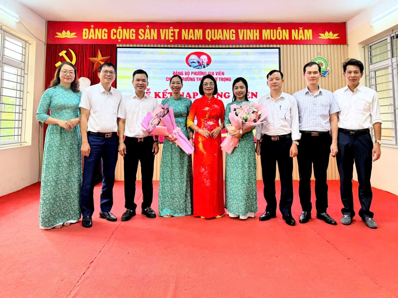 Lễ kết nạp Đảng viên đã được diễn ra trong không khí trang nghiêm, đúng trình tự, thủ tục Điều lệ Đảng. Tại buổi lễ, đồng chí Vũ Trọng Tài, Bí thư Chi bộ đã trao quyết định kết nạp, phân công nhiệm vụ cho đảng viên mới, đồng thời phân công đồng chí đảng viên chính thức trong chi bộ tiếp tục giúp đỡ đồng chí Dương Thị Hương Giang và Trần Tường Vi trong thời gian 12 tháng dự bị.