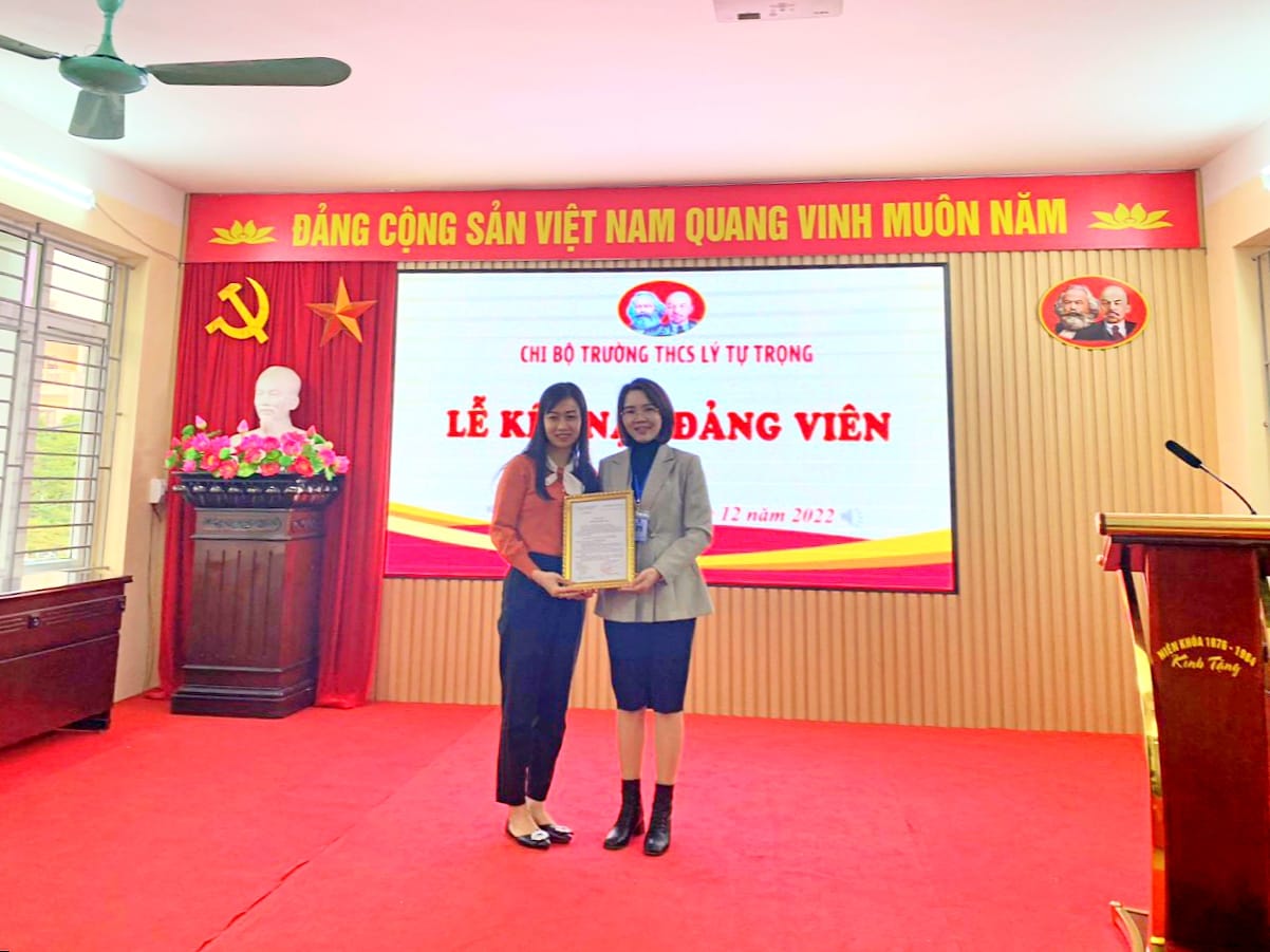 Chiều ngày 14/12/2022, Chi bộ trường THCS Lý Tự Trọng long trọng tổ chức Lễ kết nạp Đảng viên cho đồng chí Bùi Thị Thúy - đoàn viên công đoàn ưu tú.