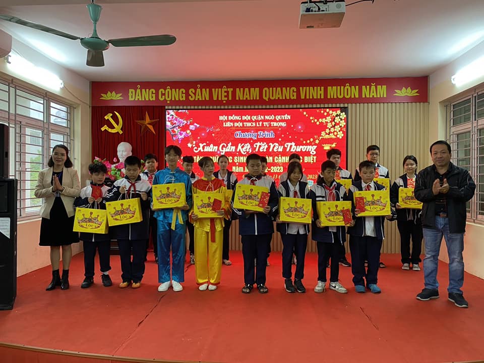 Hòa chung không khí vui tươi phấn khởi của nhà nhà người người chuẩn bị chào đón xuân Quý Mão 2023, chiều ngày 13/1, Trường THCS Lý Tự Trọng tổ chức Chương trình “Xuân gắn kết - Tết yêu thương”- Sơ kết học kì 1, biểu dương những chi đội, đội viên có thành tích xuất sắc và trao quà nhân dịp Tết đến Xuân về cho các em học sinh có hoàn cảnh đặc biệt.